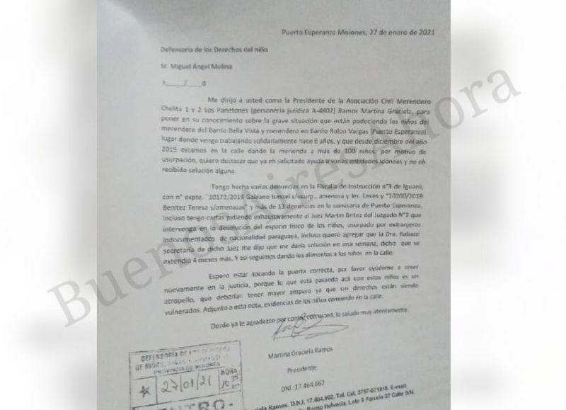 Graciela Martina Ramos, una mujer vecina de Puerto Esperanza, Misiones, denunció la usurpación del terreno donde hace cinco años funciona un comedor comunitario denominado “Chelita 1”,donde brinda asistencia a más de 100 chicos del barrio Bella Vista. Ella estaba ofreciendo la merienda para los más necesitados pero un día viajó hasta Buenos Aires y cuando regresó se encontró con su espacio tomado.